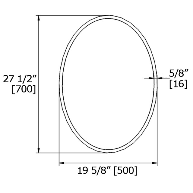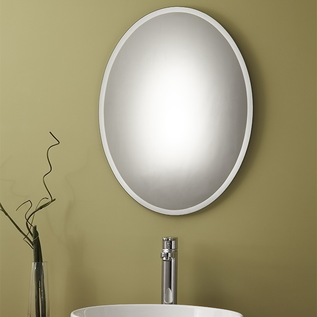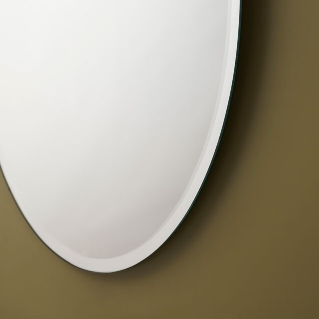 The classic beveled mirror has a 5/8” bevel. The oval design is compliments an oval sink. The classic design is not limited to the bathroom. The simple oval bevel is a great mirror for entrances or walk-in closets.