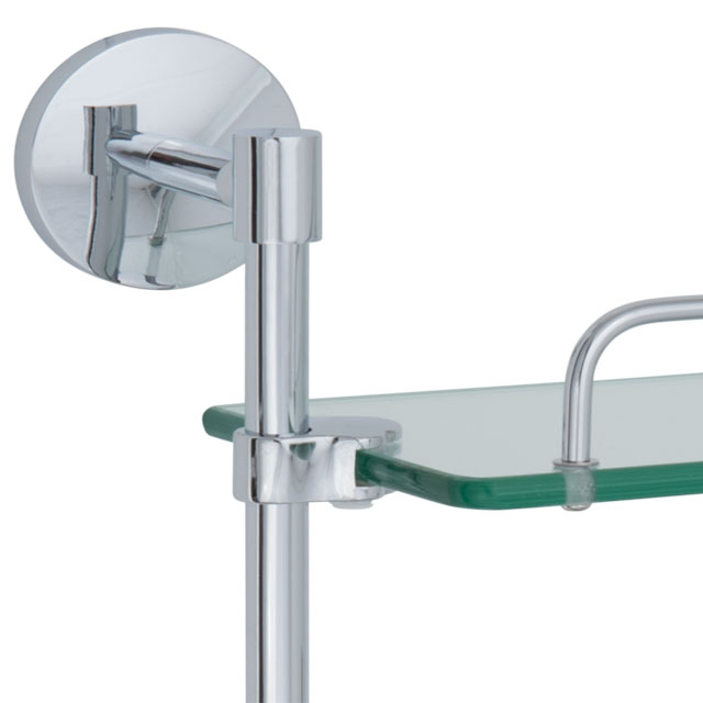 The triple glass shelf is an attractive utility shelf to compliment the bathroom, kitchen, hallway entrance or bedroom. The shelf can be used to display prized collectibles in the bath, spice and herb collections in the kitchen or keys and sunglasses in the home entrance.