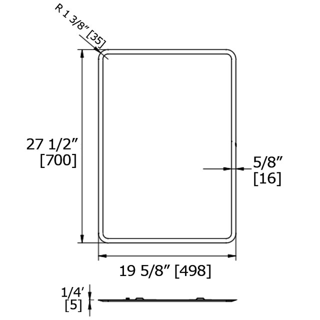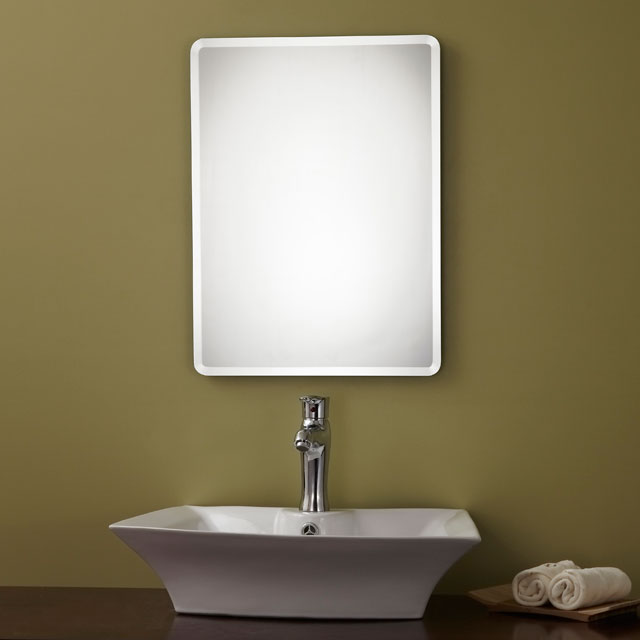 The classic beveled mirror has a 5/8” bevel. The rectangular design is softened with a 1 3/8” radius corner.