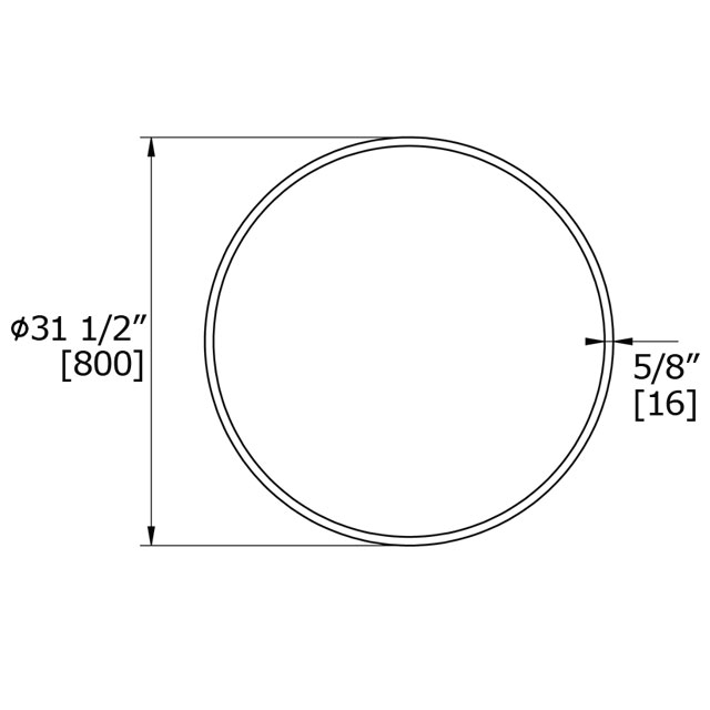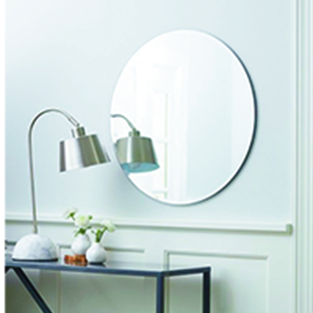 The classic beveled mirror has a 5/8” bevel. The round design is oversized with a 31 1/2” diameter. The classic design is not limited to the bathroom. The simple rounded bevel is a great mirror for entrances or walk-in closets.