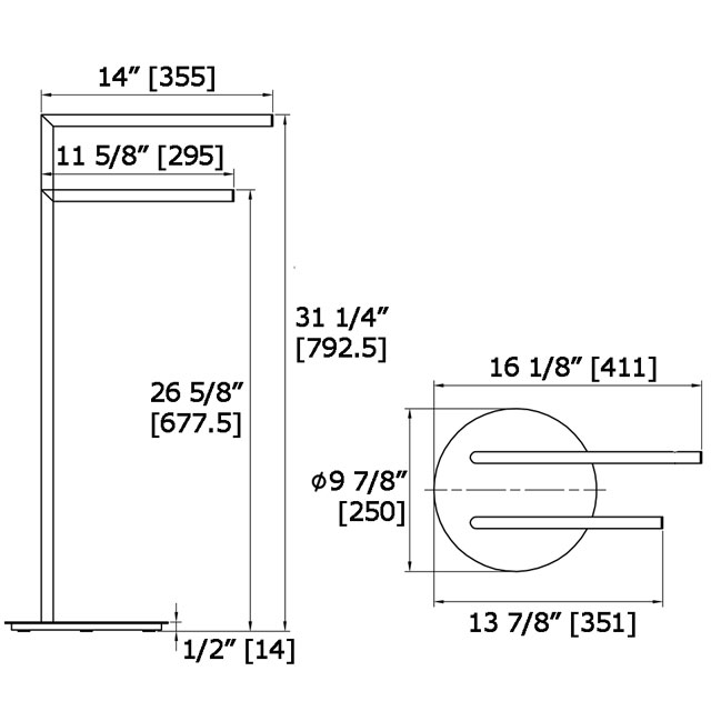 The upper towel hanging space is 13 3/8” [338mm].