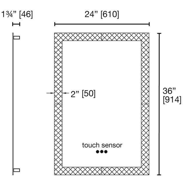 The rectangular backlit mirror has ‘halo’ lighting around the perimeter of the mirror. The LED strip shines through the frosted 2” glass frame but also illuminates the wall surface beside the mirror. The glow intensifies the nuances of your choice of wall treatment; tile or paint or wallpaper. The mirror can be hardwired to a wall switch and is turned on and off with the Touch Sensor on the mirror surface. The 3 button sensor controls the colour of the light (Kelvin) and the brigthness of the light (Lumens).