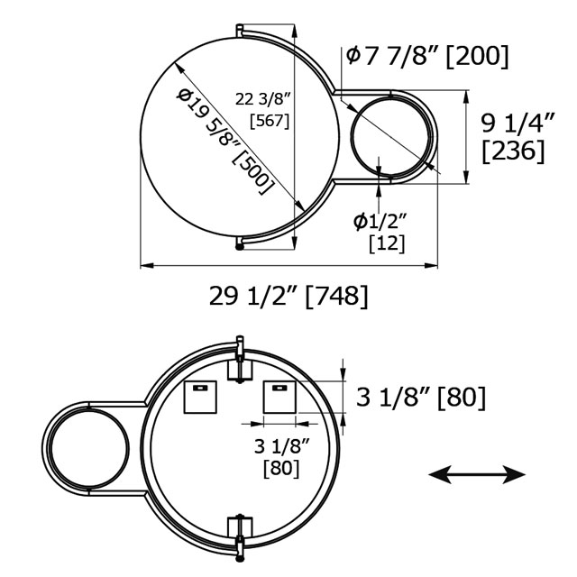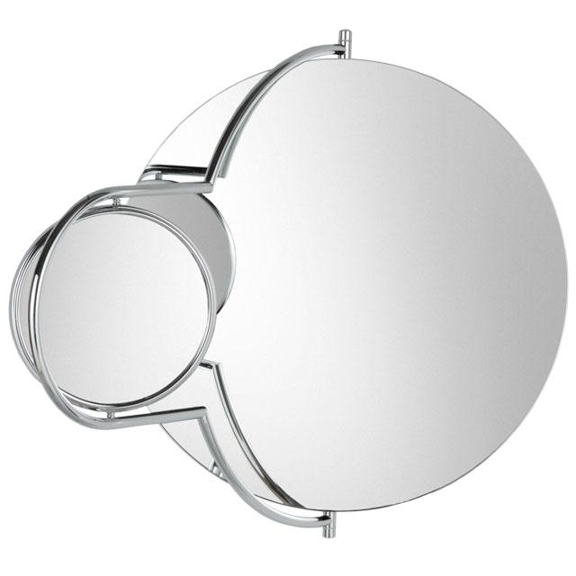 The round wall mirror has an attached hinged magnification mirror. The magnification surface is 3x. The reverse side has no magnification. The mag mirror swivels 180 degrees. The combo wall mirror/mag mirror is an affordable alternative to installing 2 separate mirrors to accommodate 2 tasks. The round mirror coordinates with a contemporary bathroom design.