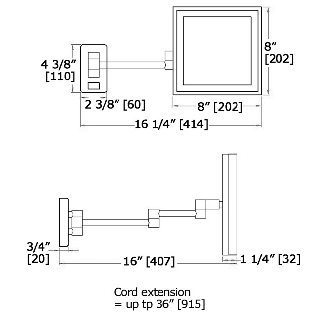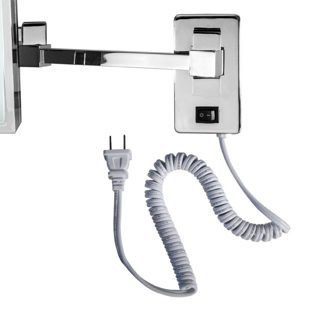 The mirror comes with a coiled power cord with an overall length of 36” [915mm].