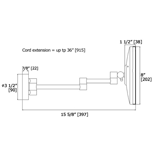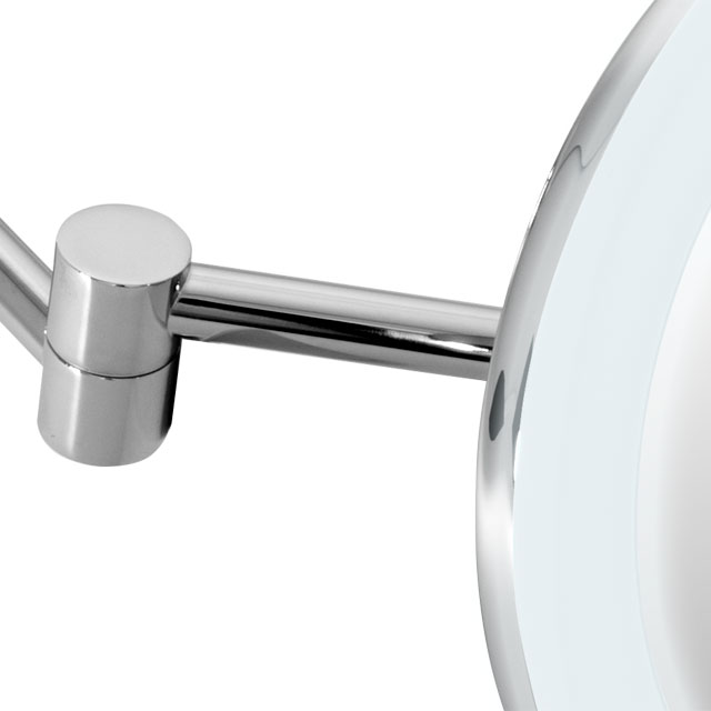 The mirror surface is 5x magnification. The LED lighting illuminates the acrylic frame. The mirror comes with a coiled power cord with an overall length of 36” [915mm].