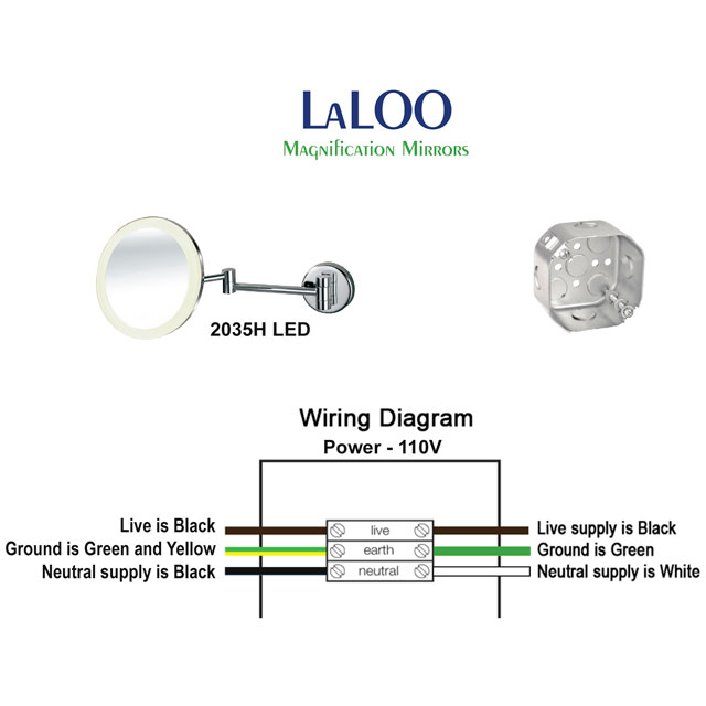 The mirror is hardwired to an octagonal junction box.